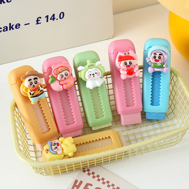 新商品のクレヨンしんちゃんは消しゴムを押し引きます。