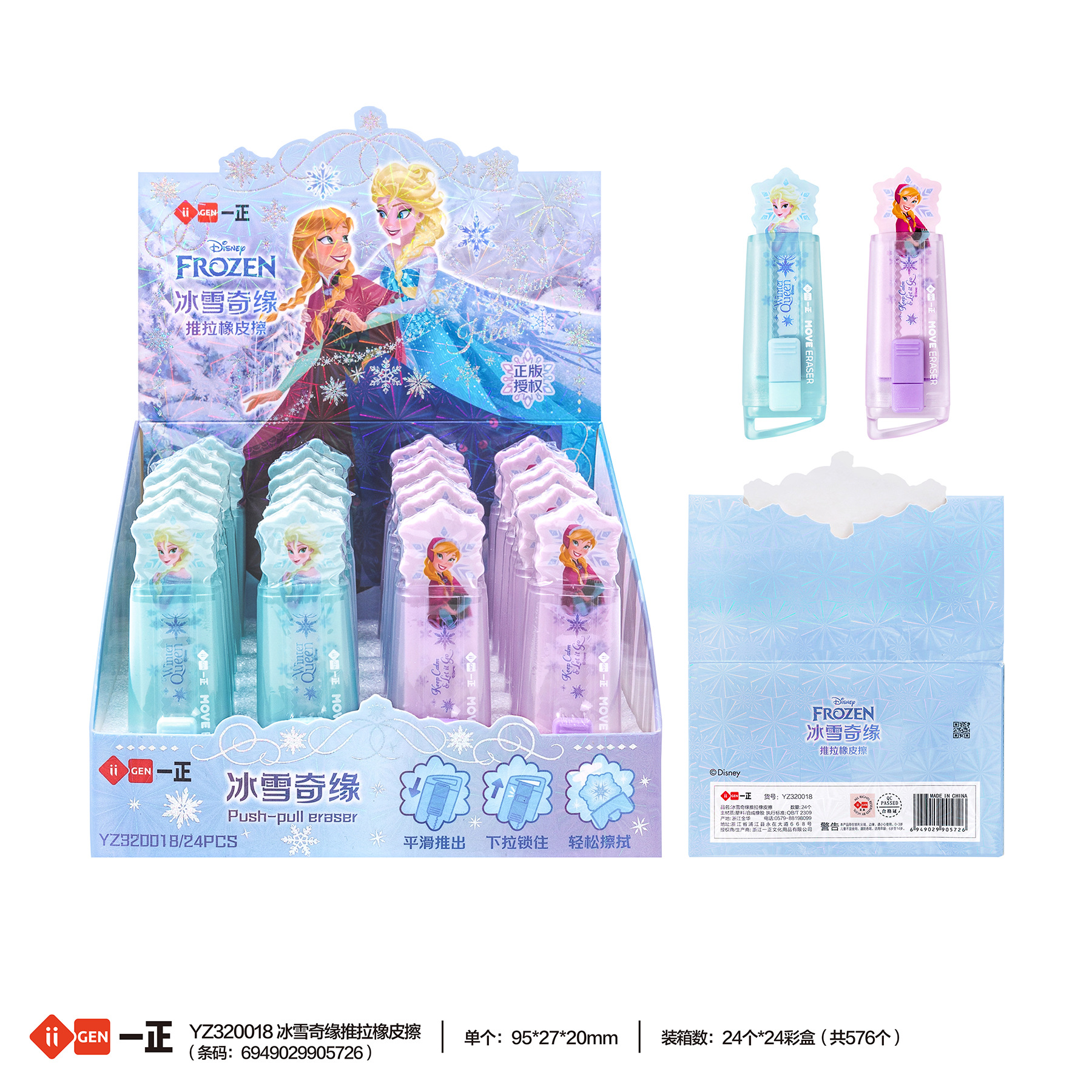iigen Yizheng 文具 ディズニー アナと雪の女王 イメージ プッシュプル消しゴム 小学生向け 特殊プレス消しゴム