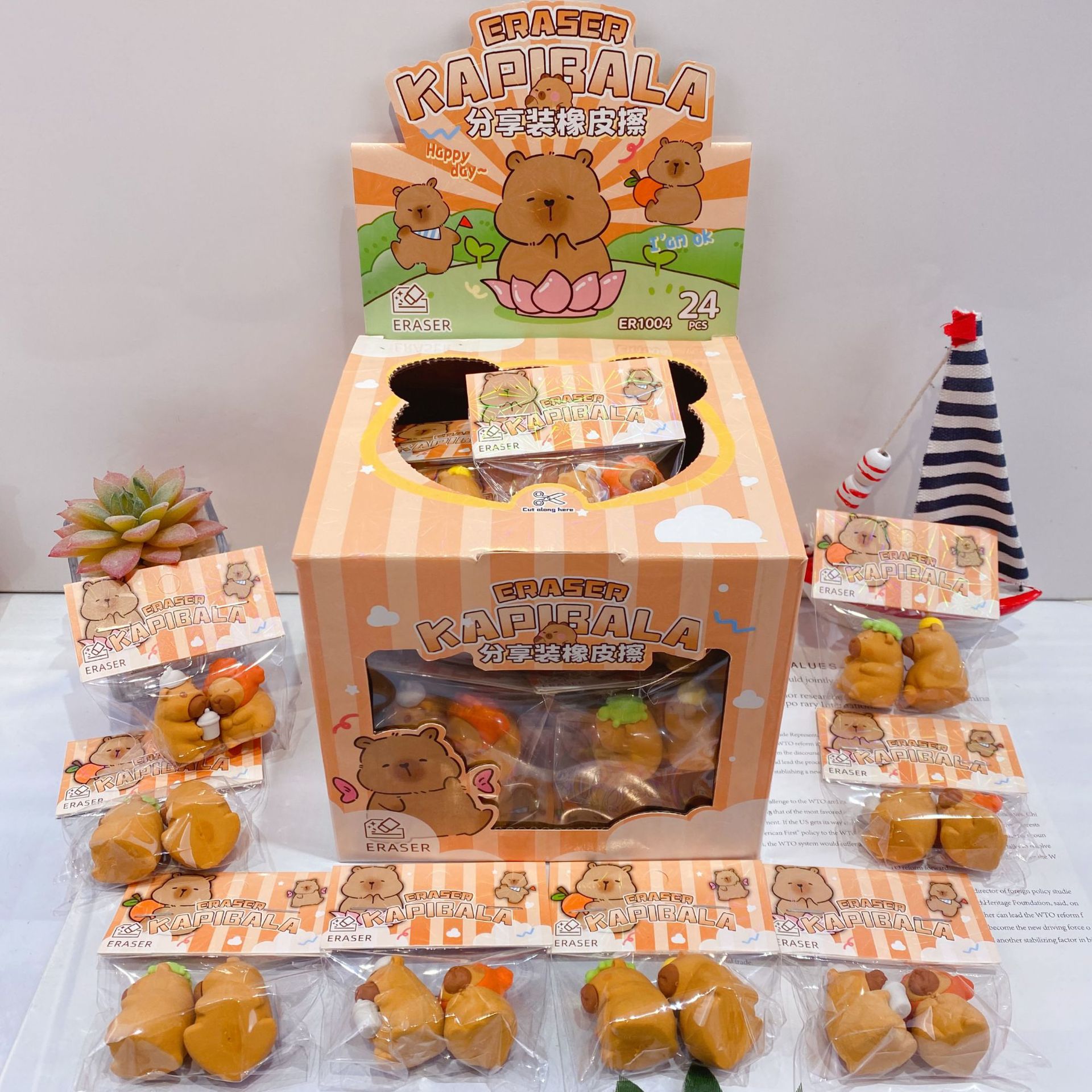 新商品のカピバラは消しゴムを共有しています。