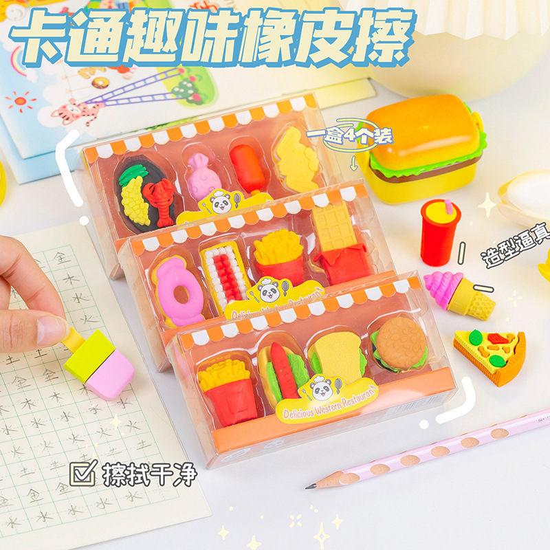 創意的なアニメの趣味の食べ物の形の消しゴムは小学生の賞品の幼稚園の学習用品の消しゴムの卸売りを拭きます。