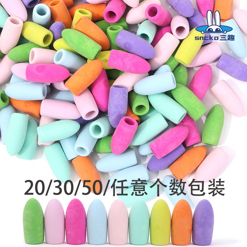 Sanqu カラフルな弾丸円筒形消しゴムキャップ鉛筆交換用小さな消しゴムヘッドカバー袋入り消しゴムクロスボーダー卸売