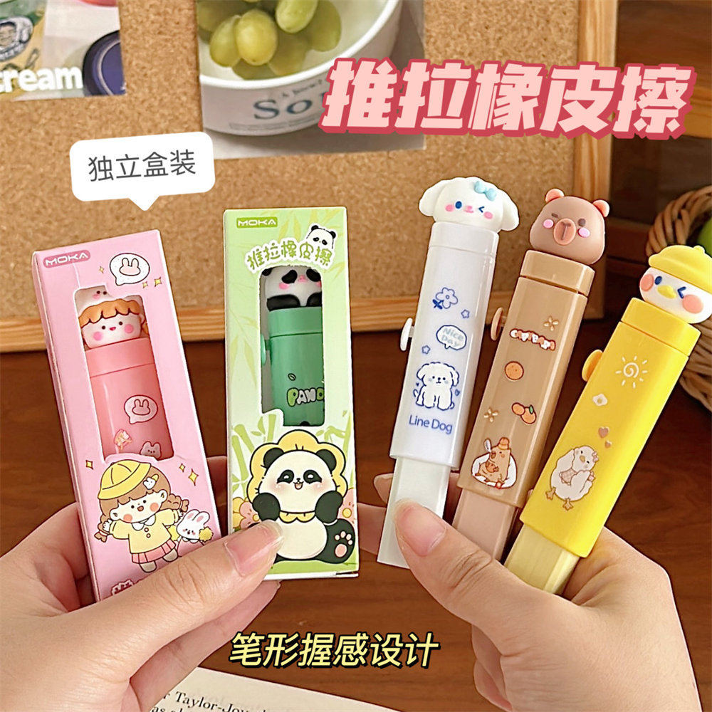 かわいい消しゴムを押して、小中学生の子供たちが文房具を勉強して、きれいで跡を残さない漫画消しゴムが伸縮できる