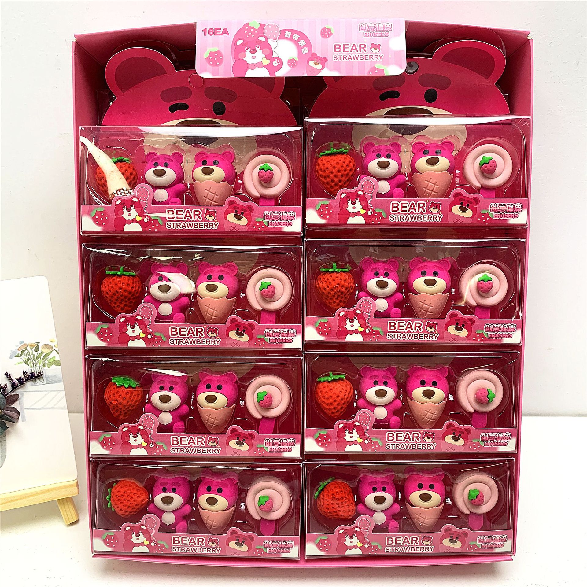 クリエイティブ漫画いちご熊立体造形消しゴム取り外し可能組み立て消しゴムセット学生文房具用品