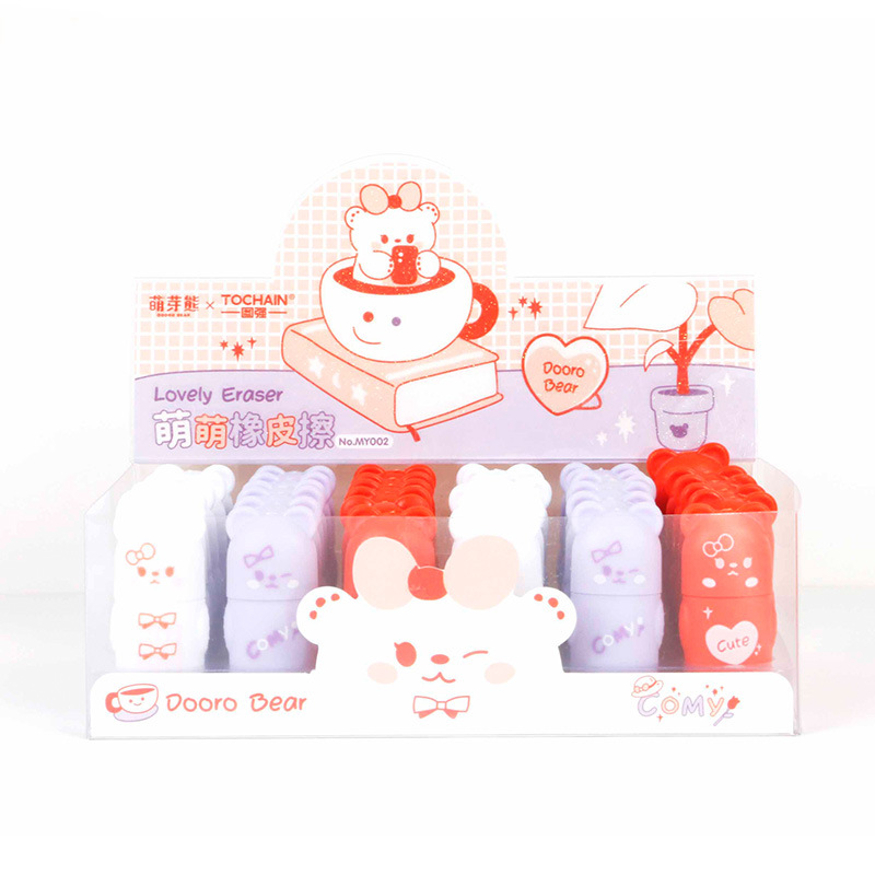 デリバターベアの共同ブランド消しゴムは、跡を残さず清潔に消せる、小学生向けのかわいい漫画風消しゴムです。