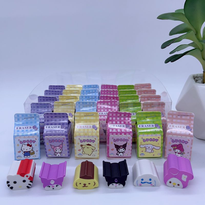 かわいいアニメの牛乳の箱の消しゴムの子供はスライスすることができます。