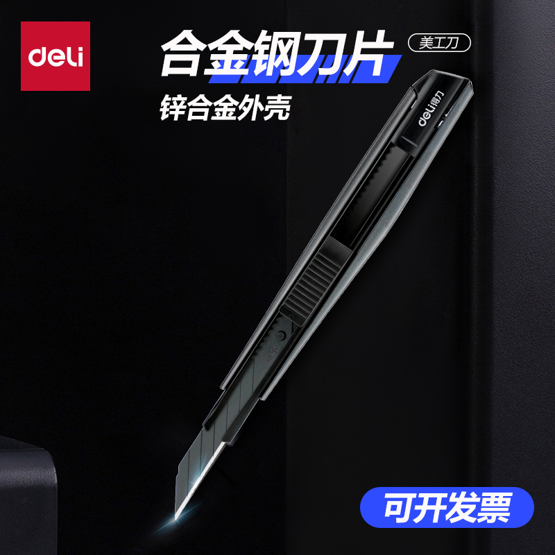 デリ 2037S ブラックブレードユーティリティナイフ亜鉛合金小型金属刃多機能伸縮ペーパーナイフ壁