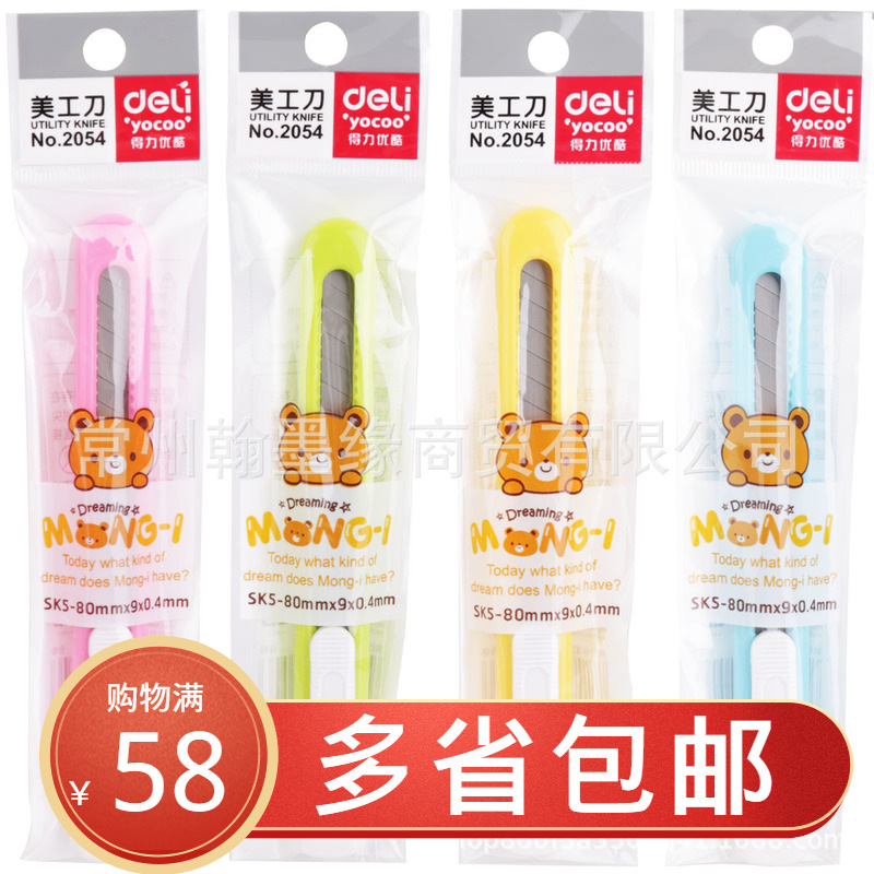 得力2054美工刀小学生裁断刀ミニトランペットキャンディー色かわいいナイフ小清新児童