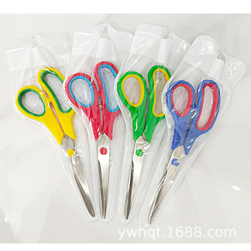 メーカー現物卸売りステンレス家庭用オフィスハサミ裁縫ハサミ学生文房具カット2色ゴムハサミ
