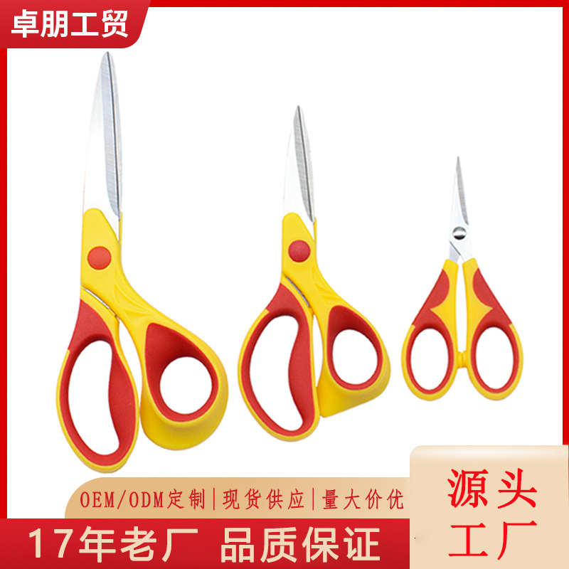 卸売りステンレスオフィスはさみ家庭用はさみ手作り2色ゴム快適ソフトグリップハンドル切り紙はさみ