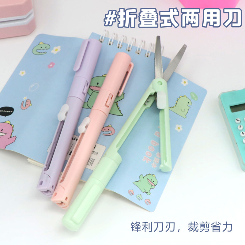 折り畳み式ペン式はさみ学生用美工刀小彫刻紙刀ミニはさみ手作り手帳陶磁器筆刀