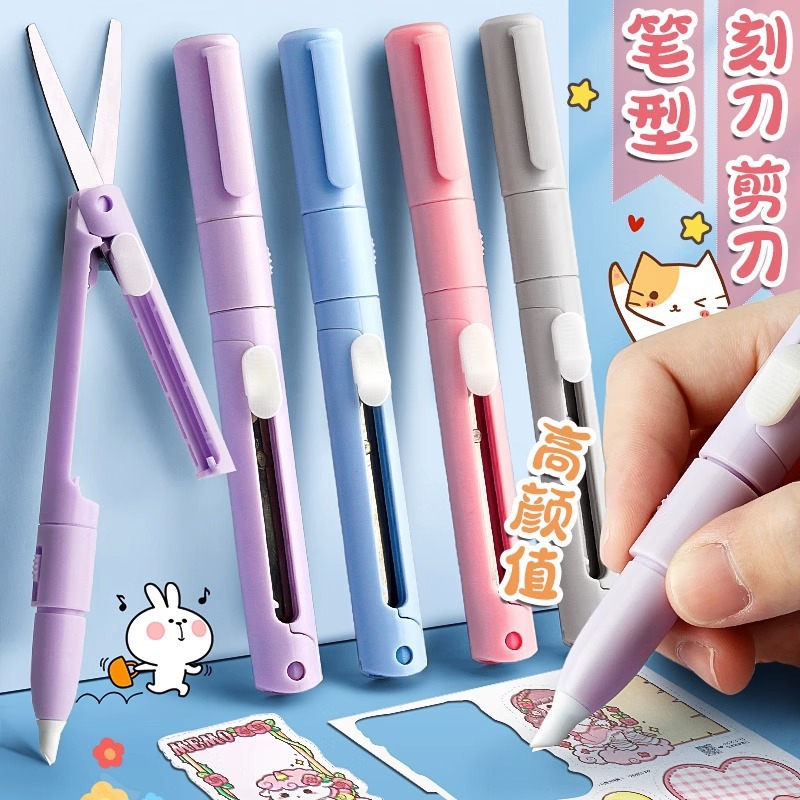 折り畳みペン式ハサミ彫刻刀学生小型ミニハサミ多機能手作り手帳裁断筆刀ナイフナイフ