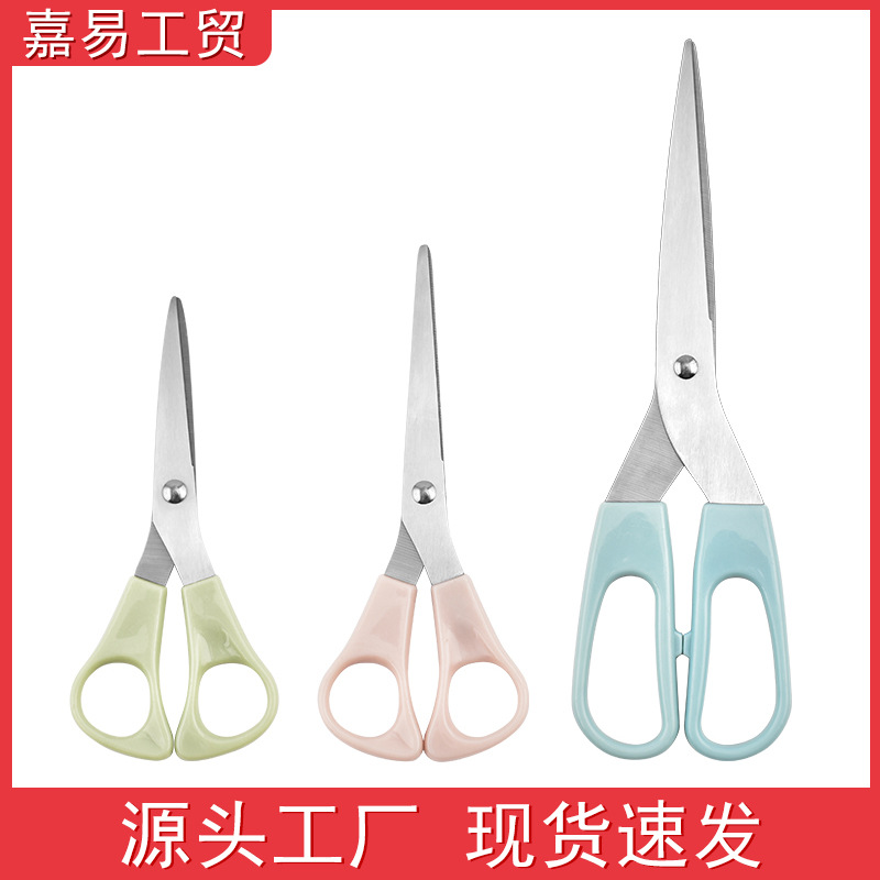 ステンレスの文房具は家庭用の切り紙を切って糸の頭を切ってプラスチックの柄の文房具の事務の学生のはさみの3セットを切ります。