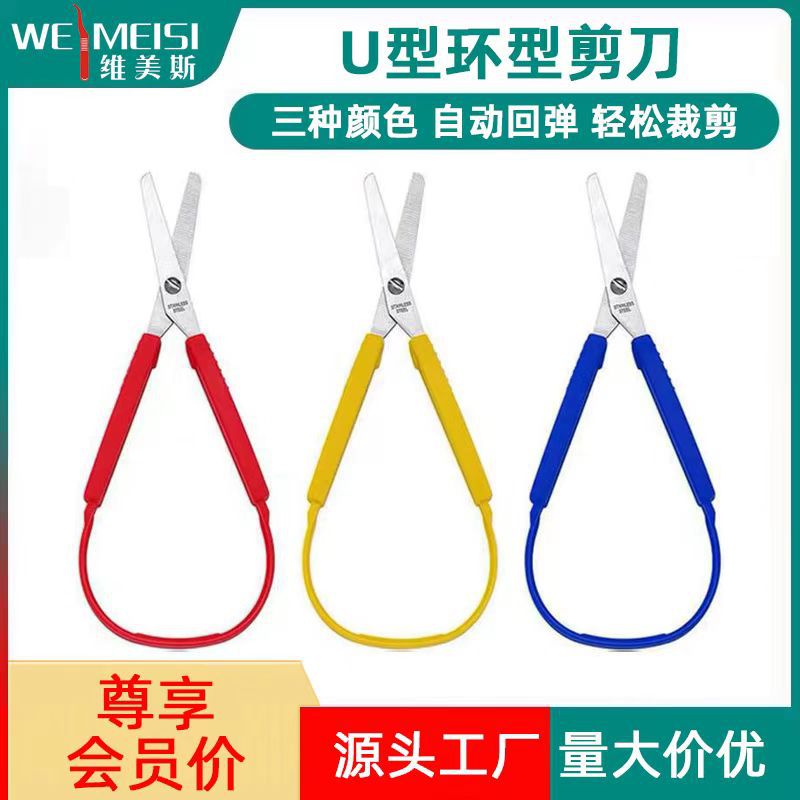 プラスチック弾力はさみ子供文房具切り紙はさみ安全リングはさみu型自動スプリングバックはさみ