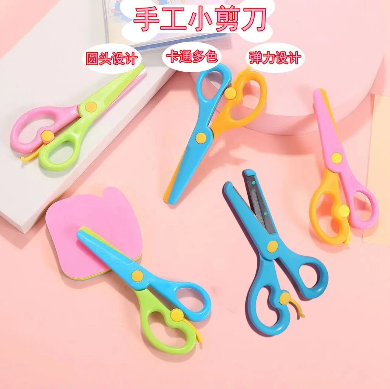 子供の手作りハサミは手を傷つけないカラー丸頭プラスチック安全ハサミ幼稚園のトランペット省力裁断紙ハサミ