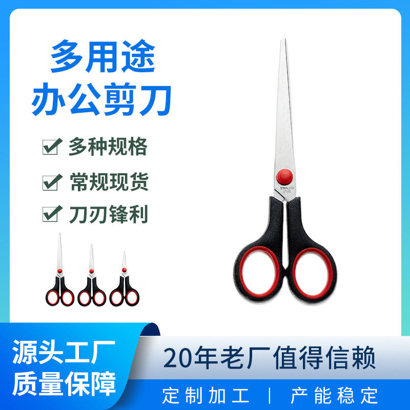 オフィスはさみのゴムの取っ手のステンレスはさみの家庭用はさみの陽江はさみの卸売りの2色のはさみ