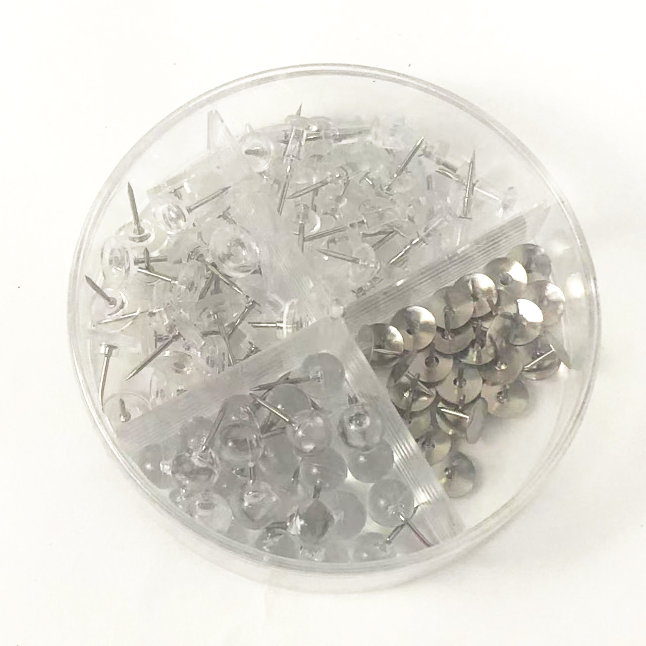シルバーI字型ペグ、丸型ペグ、オフィス用ペグ、付箋ペグ、フェルトペグセット、100個/箱、4コンパートメント文具