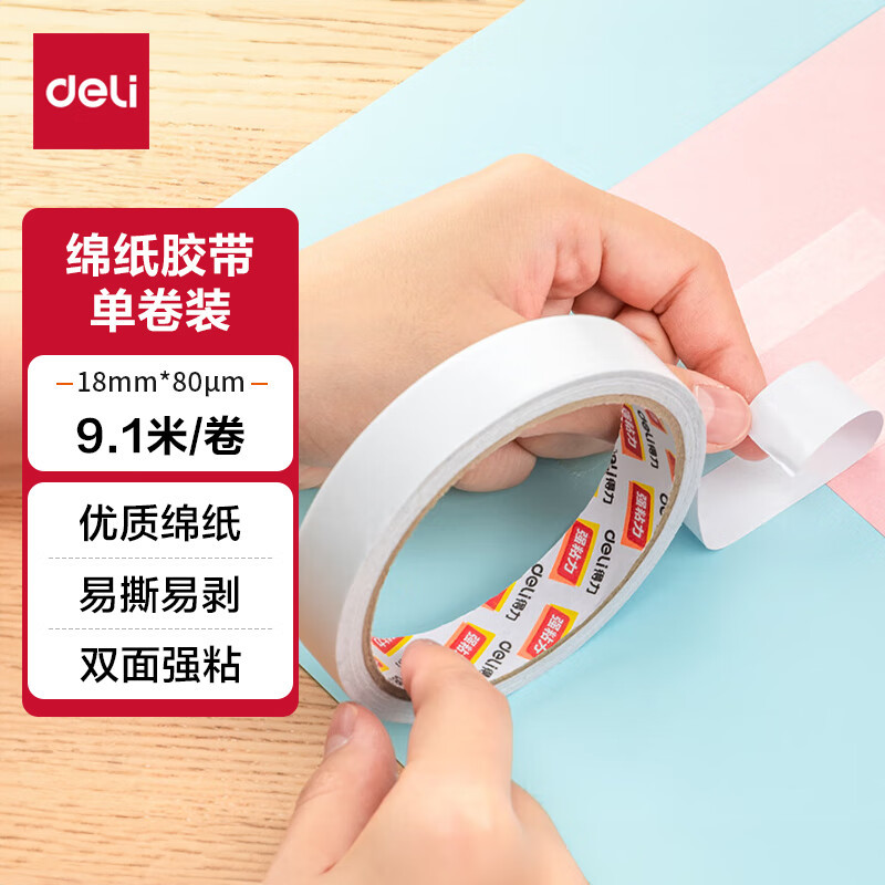 得力30406綿紙両面テープ1.8cm * 10y高粘綿紙テープ手帳両面テープ卸売り