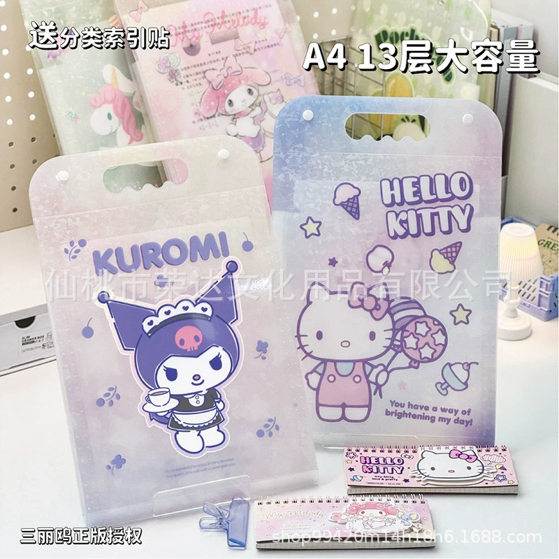 正規品 サンリオ PP防水 13インチ 縦型アコーディオンバッグ クロミ シナモンドッグ 資料テスト用紙収納 ファイルバッグ
