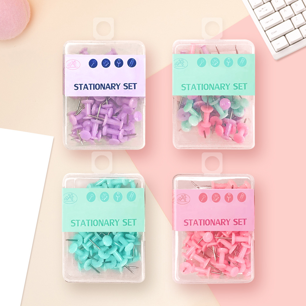 メーカー卸売り40枚入りカラー画鋲丸頭プラスチック画鋲文房具部品カラープラスチック画鋲