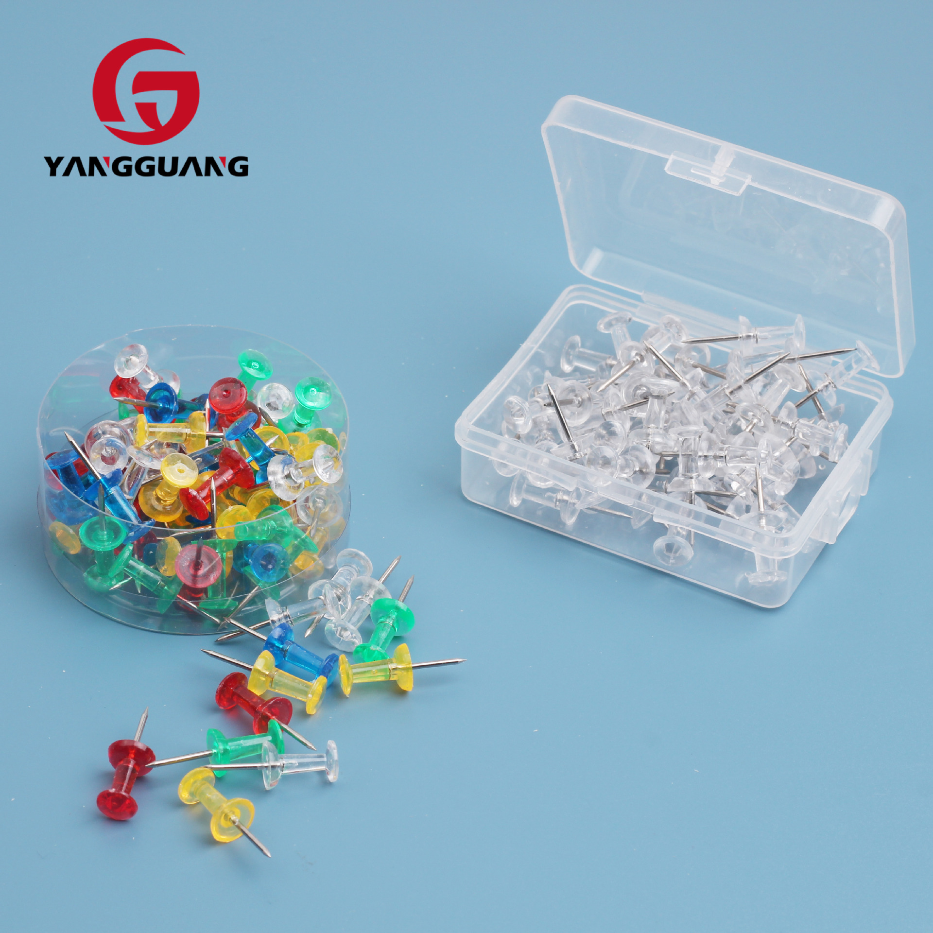 アマゾンのメーカーは子供の画鋲を卸売りして、ゴムのコルク板を押して透明な平頭の丸い釘を打ちます。