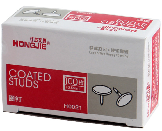 紅傑h0021画鋲の先の角の釘はニッケルの大きい頭の釘をめっきして丸い頭の小さい画鋲のコルクの板を押して釘を飾ります。