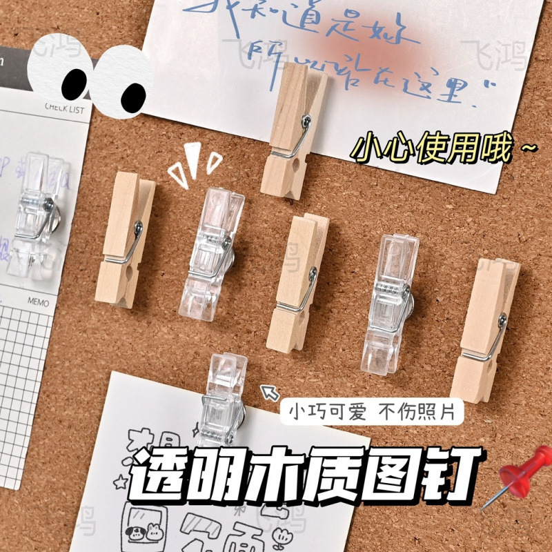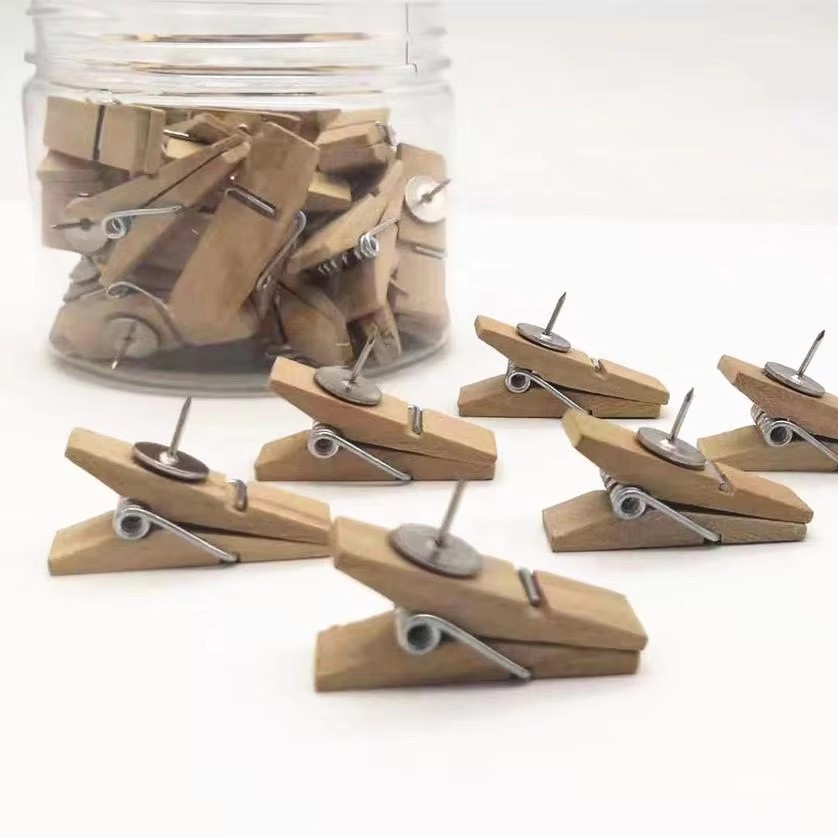 カラー木製クリップは画鋲付きでかわいい工字釘コルク板DIY写真壁フェルト板は小さなクリップを押します。