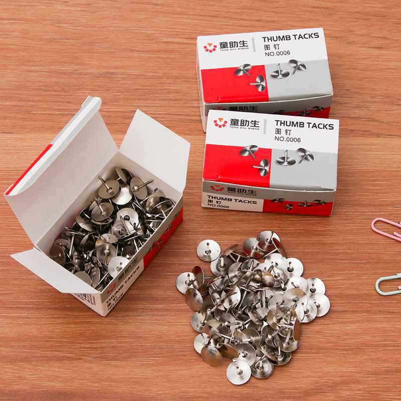 ニッケルメッキ画鋲100枚色紙箱入り画鋲工字釘銀色画鋲画鋲事務文房具卸売り