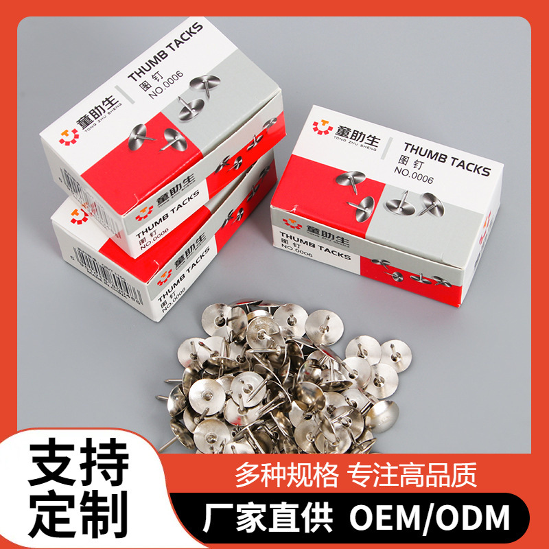 専門生産画鋲50枚入り金属画鋲銀色画鋲箱画鋲卸売り円形釘代件