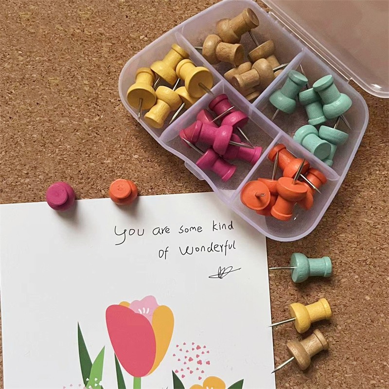 30個のカラー木製工字釘画鋲セット実木創意事務文房具コルク画鋲固定事務釘