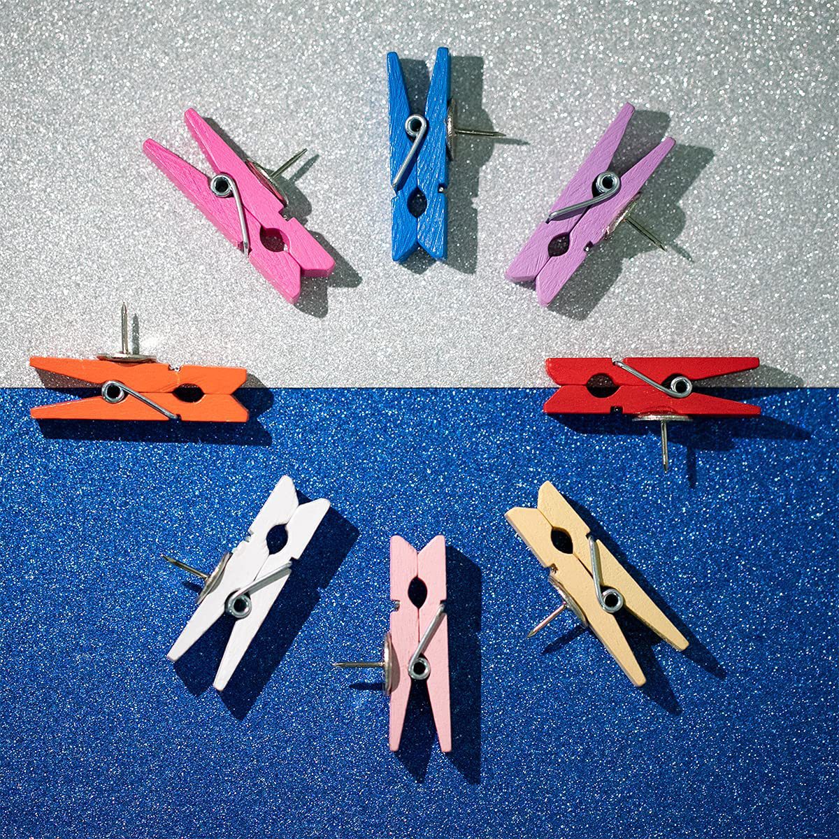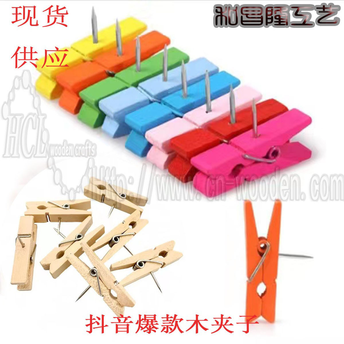 メーカー直販卸売り3.5cm小クリップ画鋲釘付き木クリップ写真壁diy装飾カラークリップ画鋲