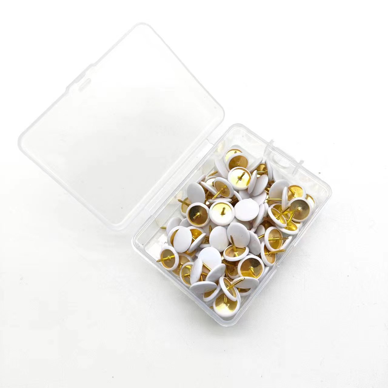 ホワイトカラーの事務用品の画鋲はニッケルのスーパーの商品のソースをめっきします。