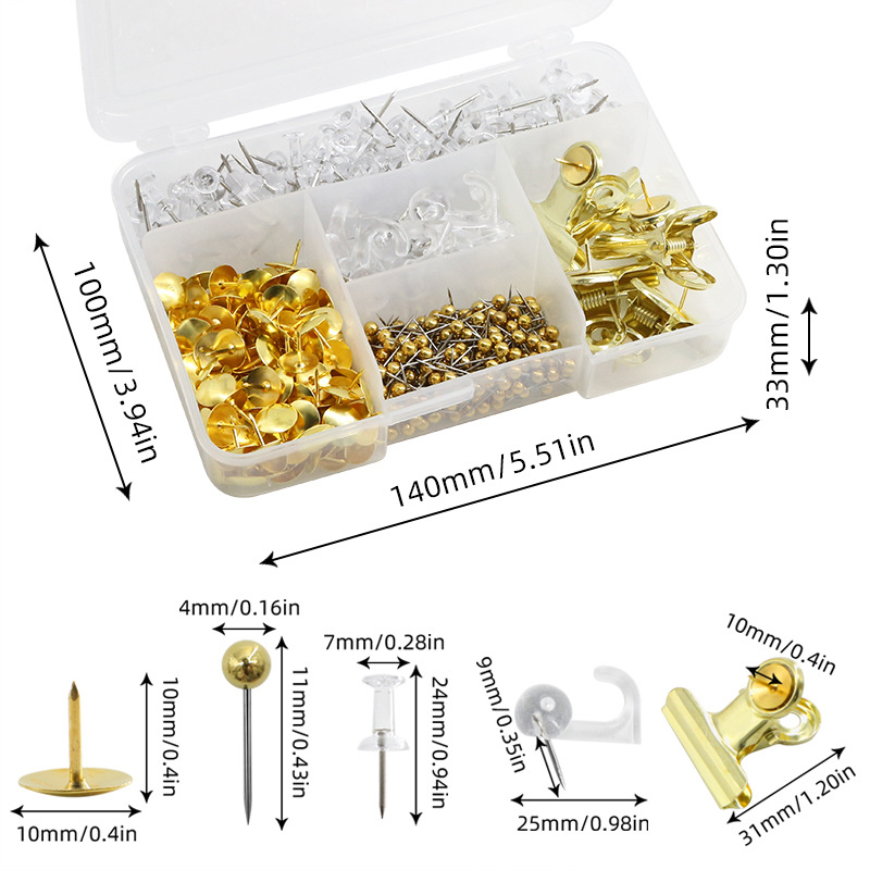 465枚の金色の帯仕切り収納ケース5種類の事務文房具画鋲セットコルク掲示板固定画鋲
