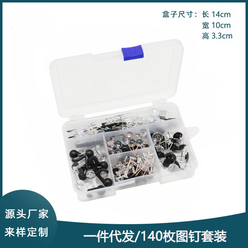 メーカーの新型140枚/箱全黒画鋲セット学習事務文房具装飾コルク板固定工字釘