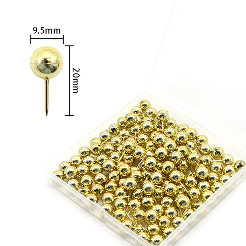 9.5 * 20mm金色のプラスチックボールのピン150枚/箱はがき便箋固定装飾ピン卸売り