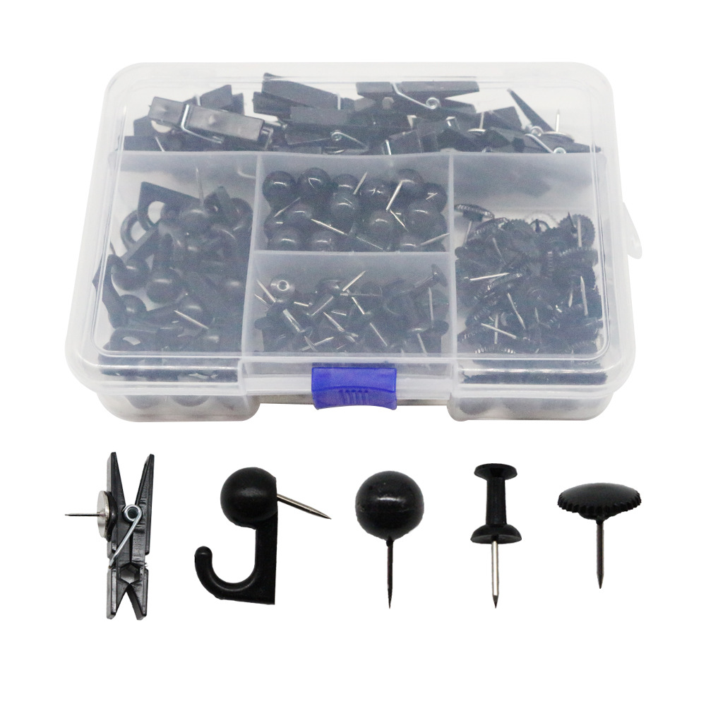 クロスボーダー新型150/200枚筒装黒色円形平頭釘事務文房具押し釘コルク板固定釘