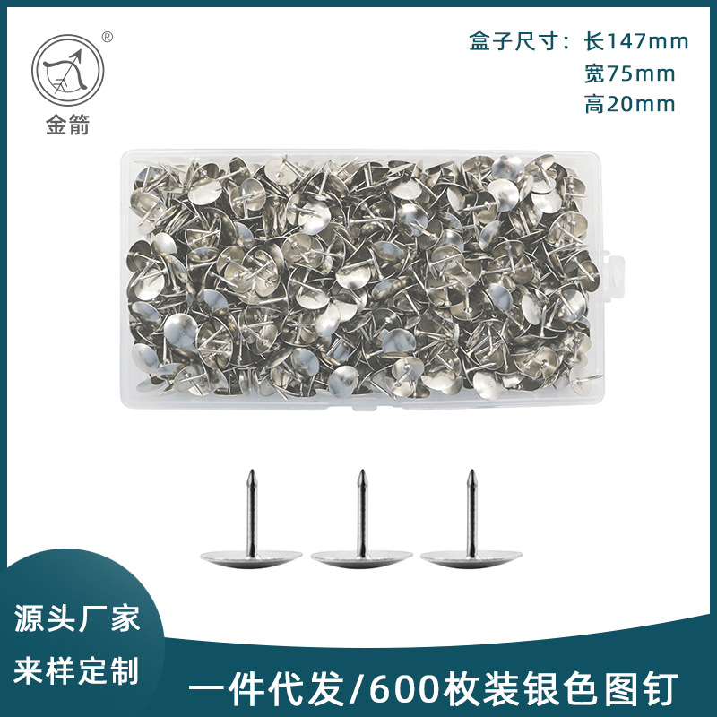 卸売り事務文房具画鋲500枚/筒銀色大頭釘押し写真壁釘コルク板釘