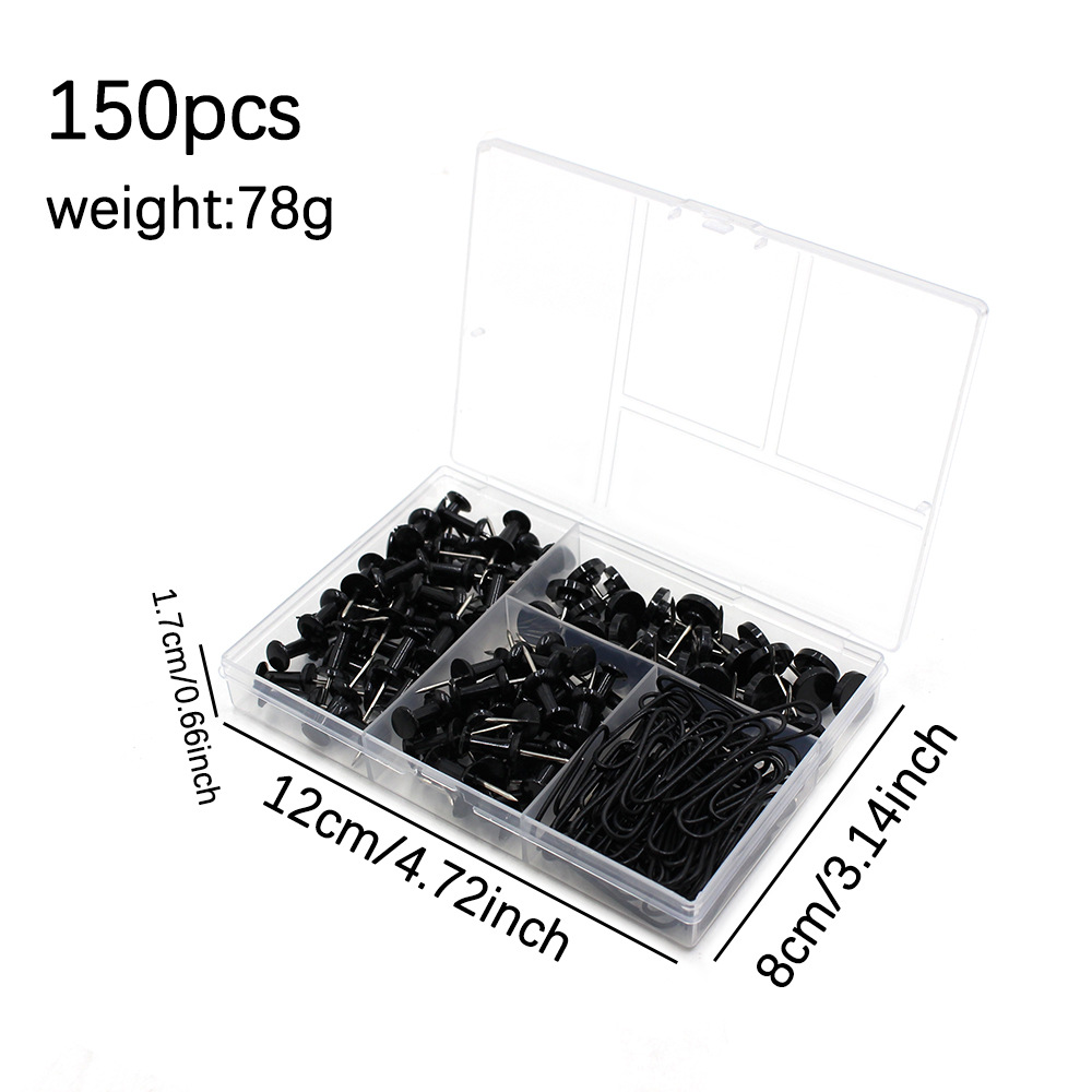 150個の黒い画鋲とペーパークリップセット、絵画固定スケッチペーパー製本クリエイティブディスプレイ用 NAIL