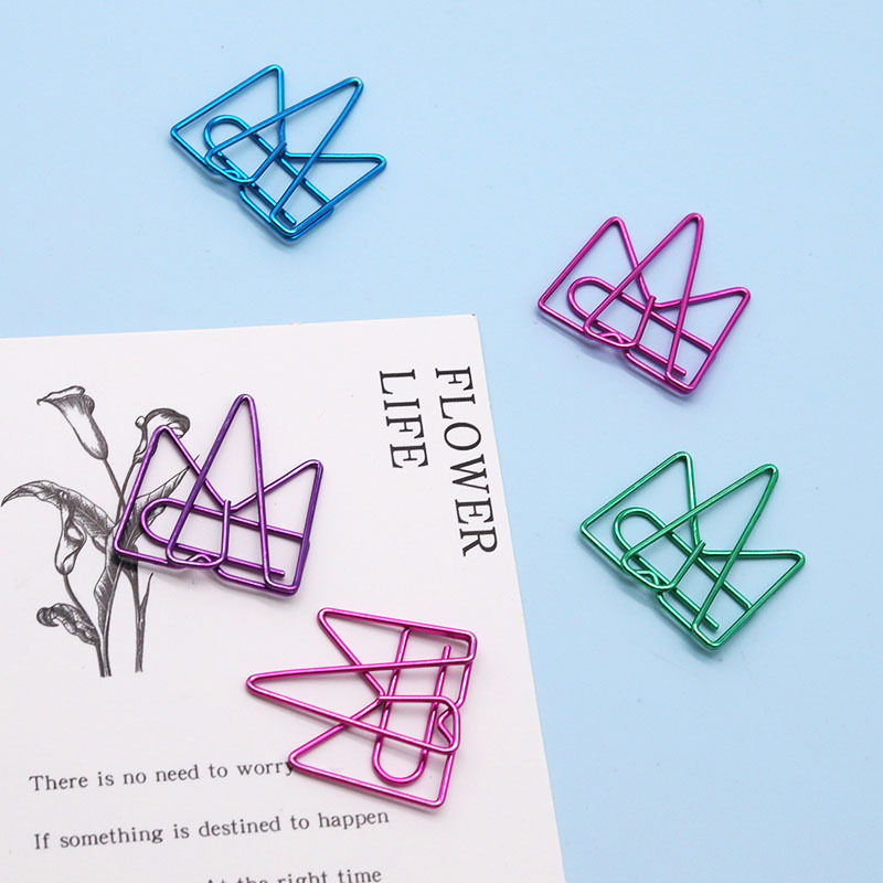 メーカー卸売クラウン形状ペーパークリップ金属色ペーパークリップオフィス文具学生特殊形状ペーパークリップ