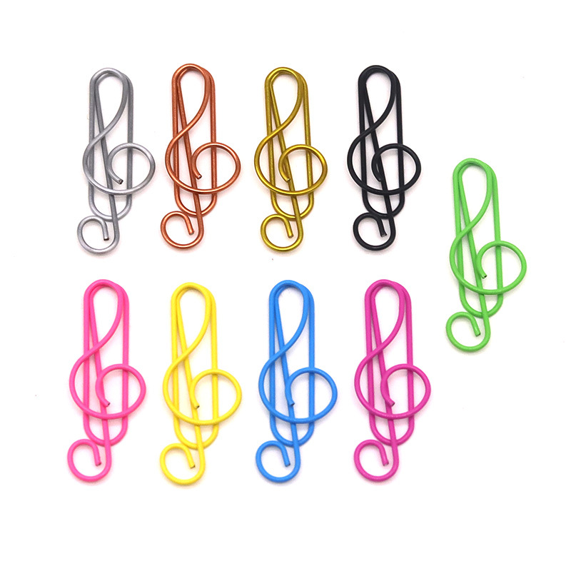 カラフルな音符型のペーパークリップ、特殊形状のクリップ、金属製プラスチックコーティングされたクリップ、事務用品