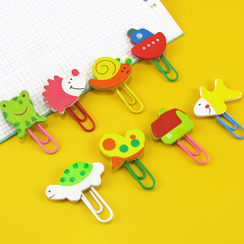 木製アニメ動物型カラークリップ日韓文房具児童かわいいクリップファッションクリップ