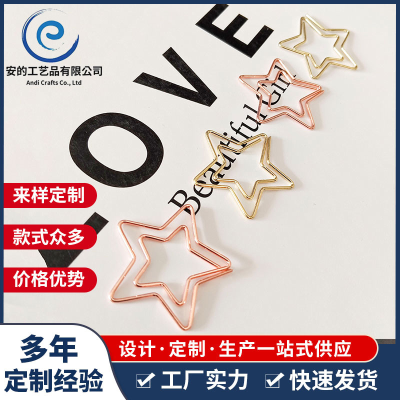 ホット販売漫画クリエイティブメタルラブペーパークリップオフィス文具収納クリップ小さな星特殊形状ペーパークリップ