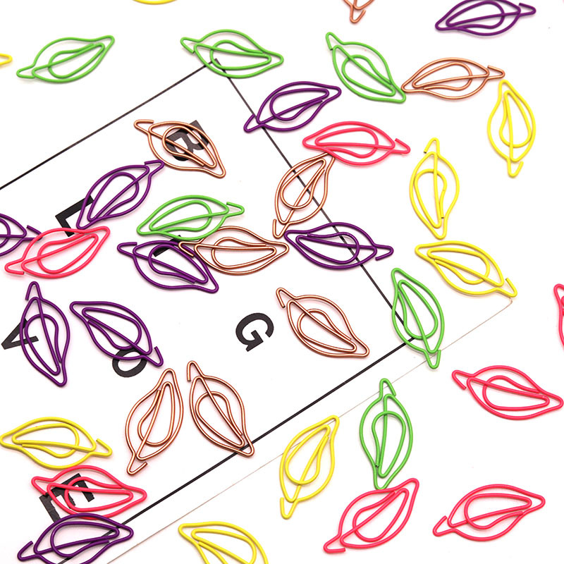 リーフ形状クリップ金属カラークリップオフィスファイル資料紙クリップオフィス文房具用品