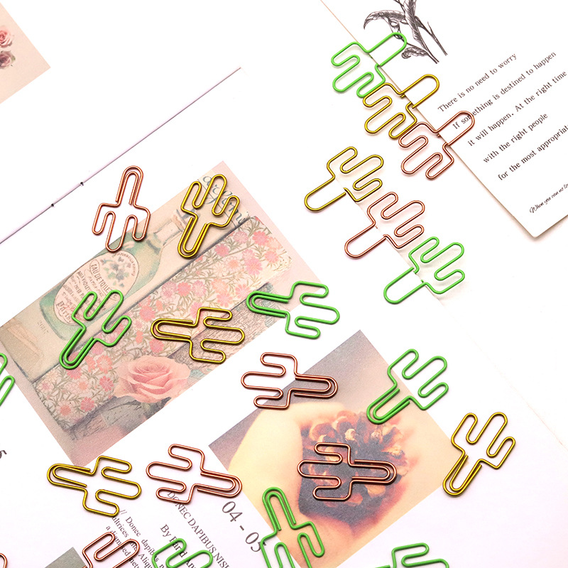 サボテン形状クリップ金属カラークリップ鉄製クリエイティブペーパークリップオフィス文房具資料分類クリップ