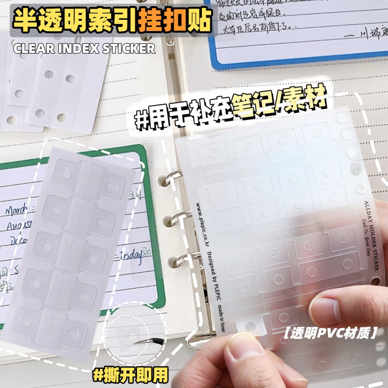 a4a5a6a7 ルーズリーフノート用インデックスステッカー、吊り下げ式ステッカー、丸穴、粘着式、DIY改造、ルーズリーフ穴埋め
