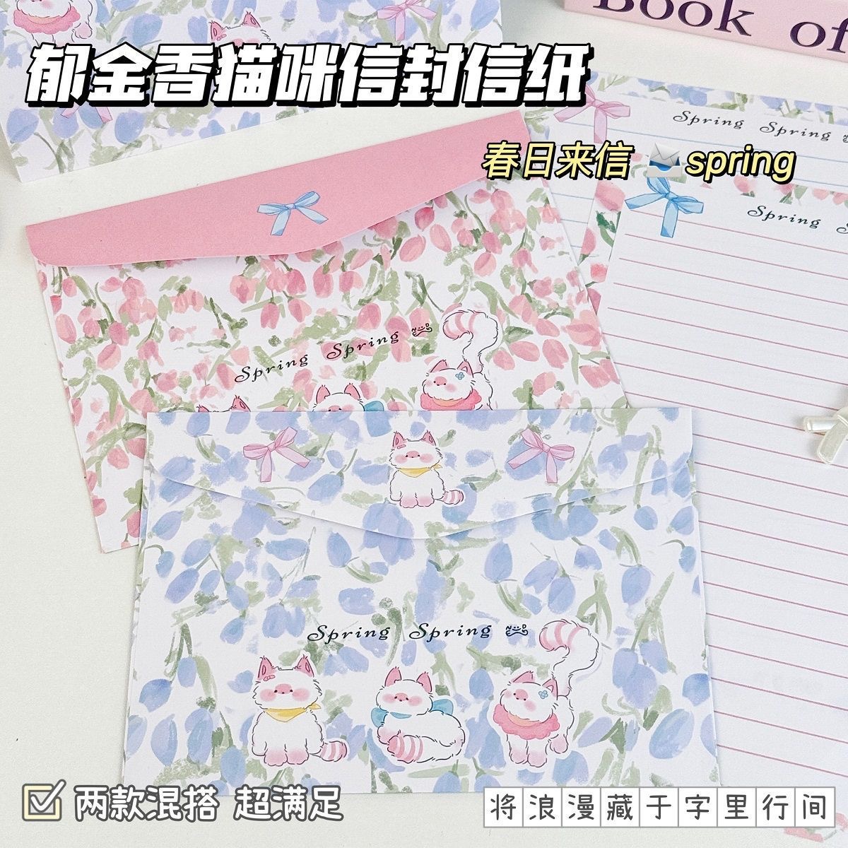 新しいチューリップ猫シリーズ便箋学生ホリデー祝福漫画クリエイティブかわいいハイエンドレターヘッド