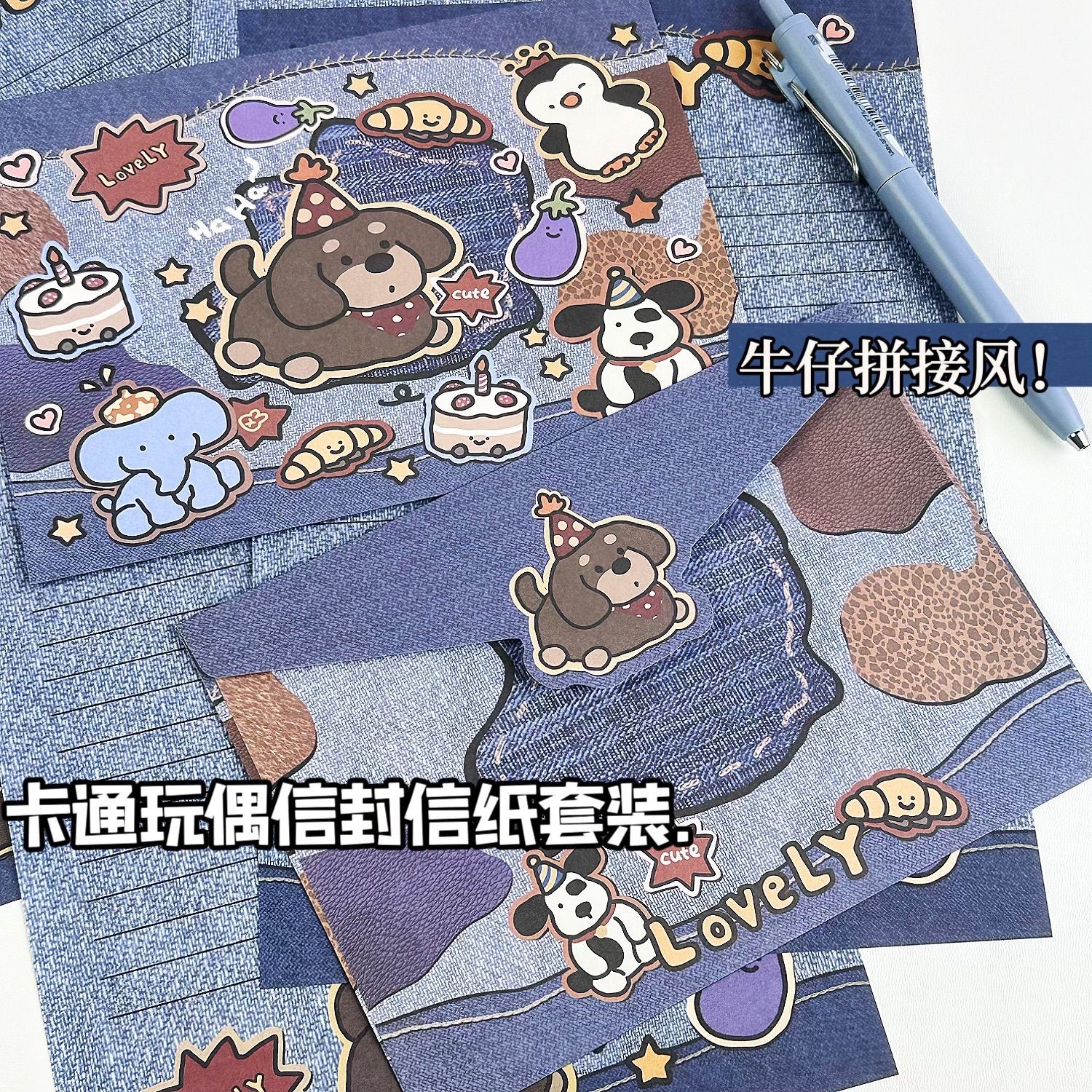 漫画デニム色の人形封筒レターセットクリエイティブお祝い记念プレゼント手书きメッセージ高颜値レター
