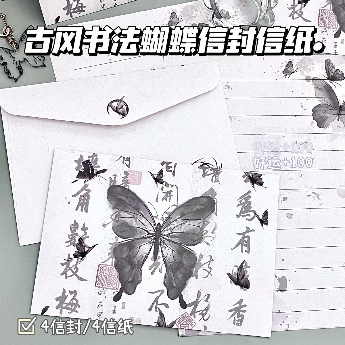 新しい古代スタイルの書道蝶便箋セットイン高価値学生ロマンチックな告白手書き手紙