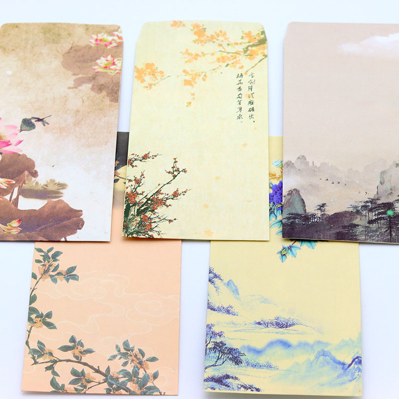 中国式封筒唯美中国風封筒古風カラー手描き封筒水墨風招待状はロゴを温めることができる