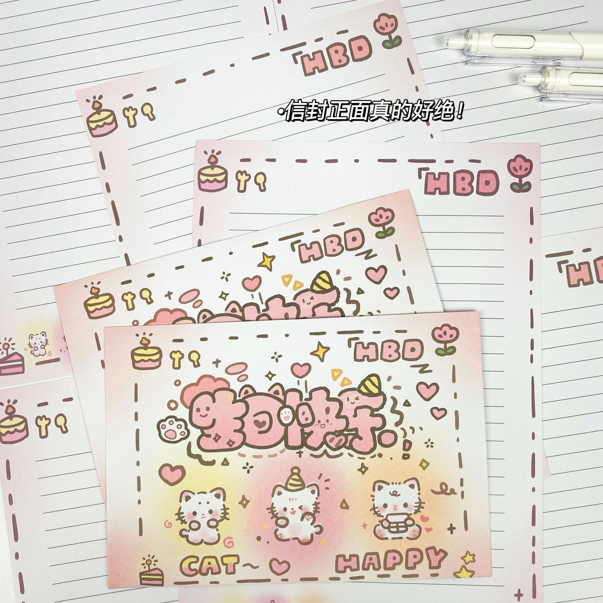 诞生日子猫かわいい封筒レターインスタ风诞生日プレゼント手书き手纸シンプル高颜値レター漫画