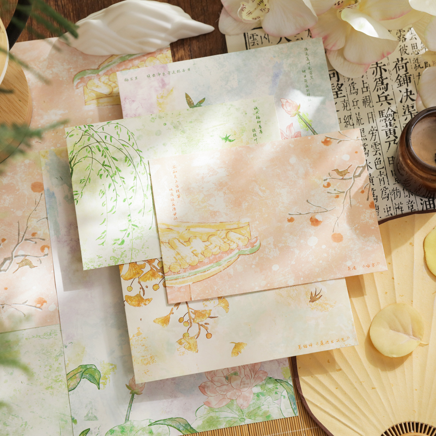 中国風古風金箔A5便箋卸売 精巧な中国風カラー書ける・印刷可能 8枚入り
